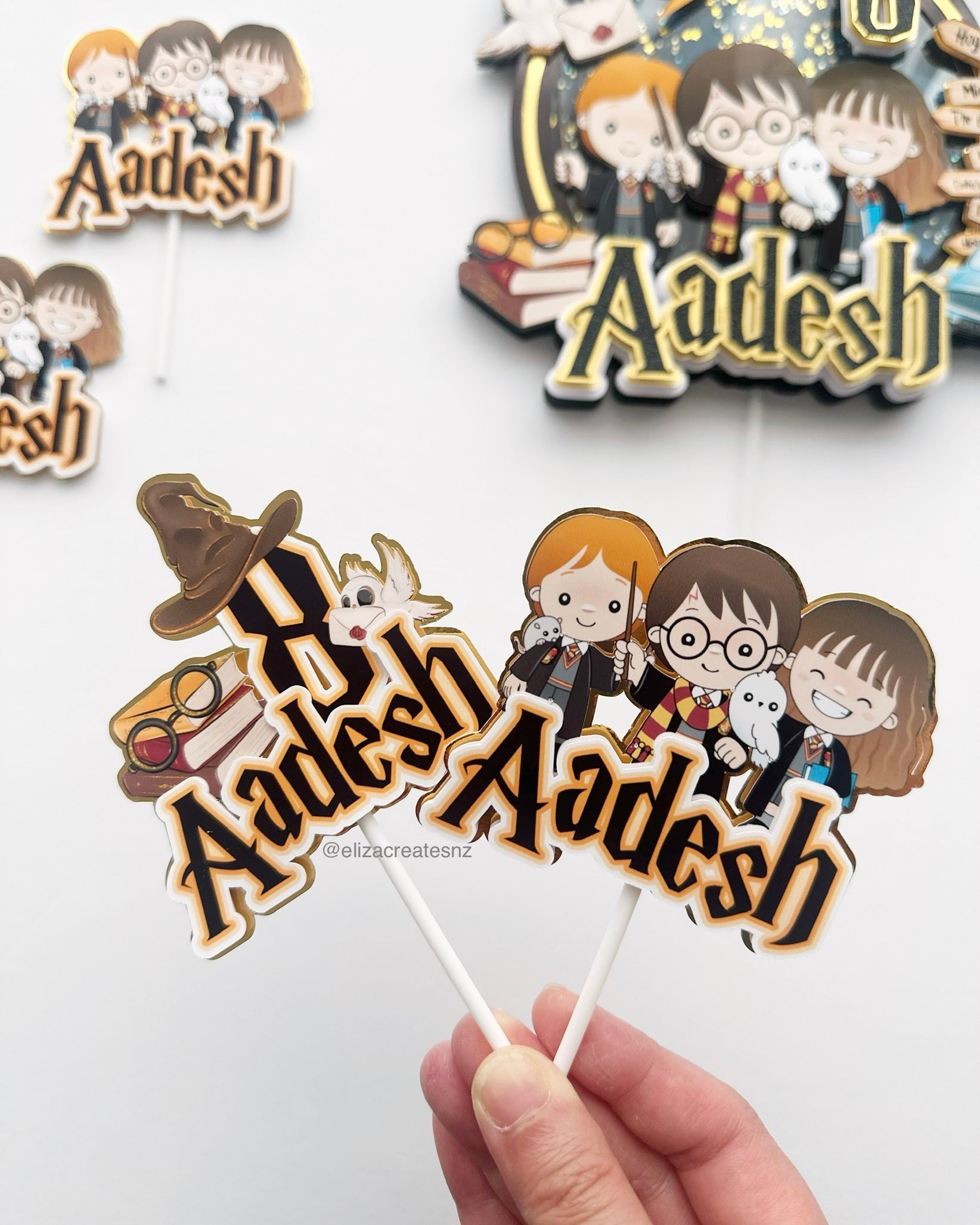 This cupcake topper consist of a design based on the theme with name or age. Size is 2-3" wide depending on the image of design. Topper is attached to a lollipop or wooded stick, whichever is available and or suited for the theme.